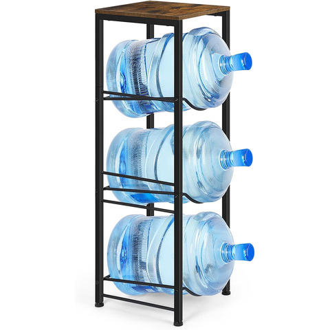Estante para jarras de agua de 3 niveles, organizador de soporte para botellas de agua de 5 galones con estantes de almacenamiento, Marrón rústico