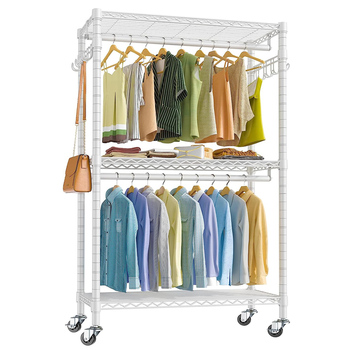 Armarios portátiles Perchero rodante 3 niveles Estantería de alambre ajustable Perchero de ropa con ruedas, almacenamiento de armario independiente